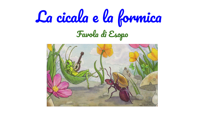 Buongiorno bambini, oggi vi ho preparato un percorso sulla favola di Esopo: " La cicala e la formica". Non vi resta che iniziare, vi auguro buon lavoro ma prima di incominciare la lezione voglio spiegarvi l'importanza della festa del 25 Aprile …